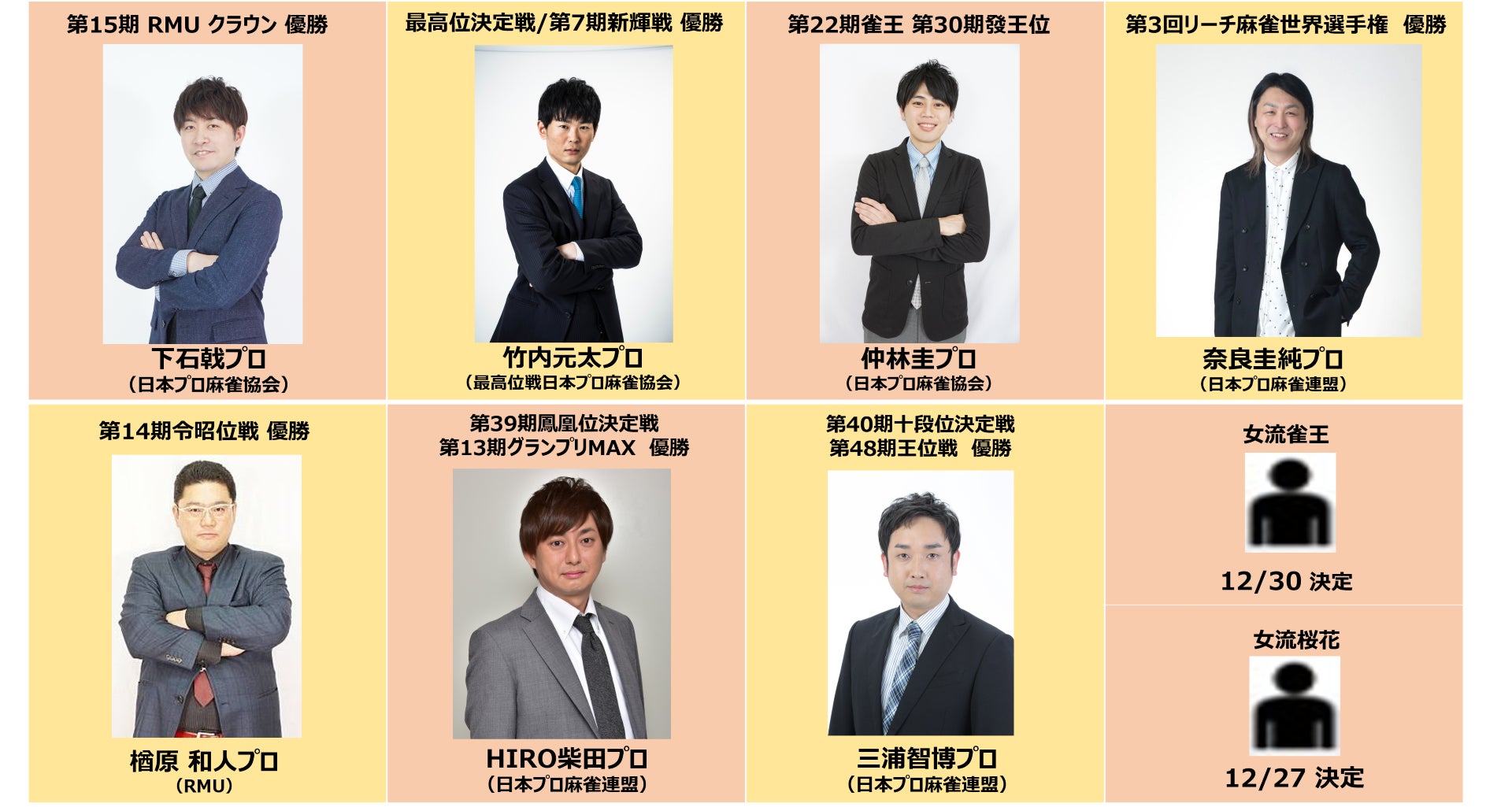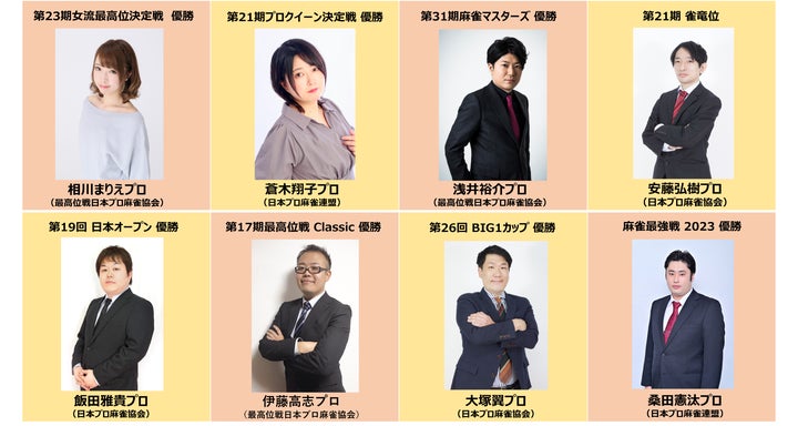 出場者は麻雀プロ団体のタイトルホルダー、BEAST Japanextの選手、Mリーガー、ジョーカー枠の4名で構成されます。