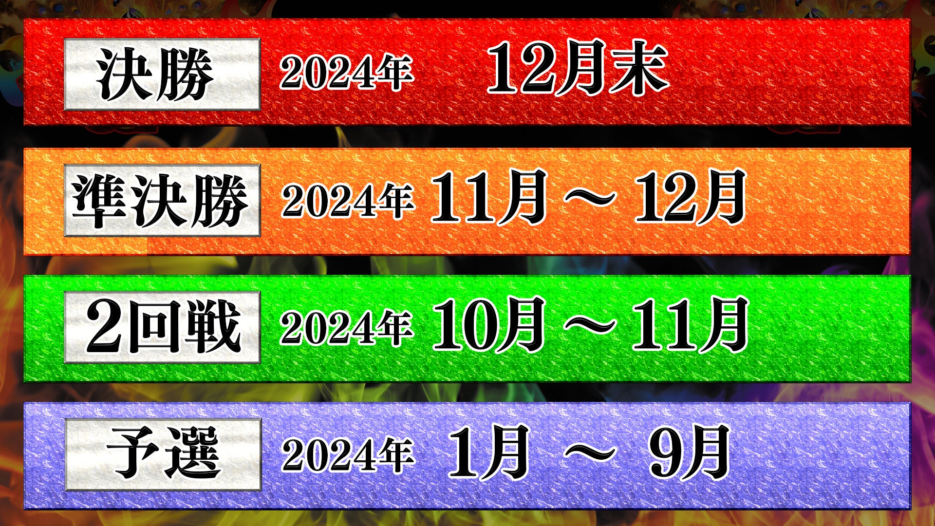 優勝賞金は300万円で、予選から始まり、準決勝を経て決勝戦が行われます。