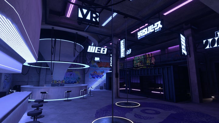 カフェバーと会議室があり、バーチャル空間での交流やイベントが楽しめます。