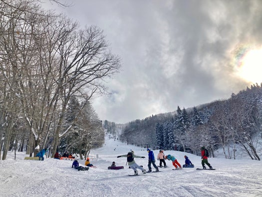 スキーは経験者のみ、スノーボードは初心者でも参加できます。