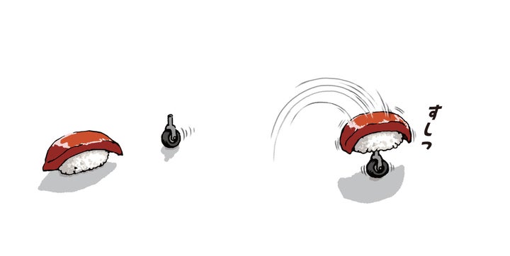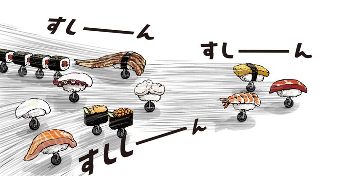 - すし達はネタを奪われたり分け合ったりしながら勇敢に進む