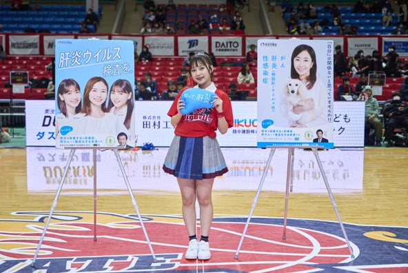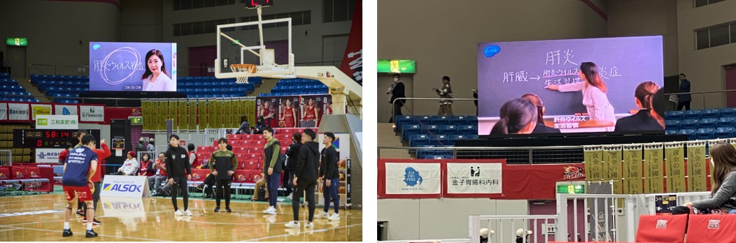 また、肝炎対策の啓発動画も放映され、ハーフタイムにも鈴木さんが登場し、検査の重要性を再度訴えました。