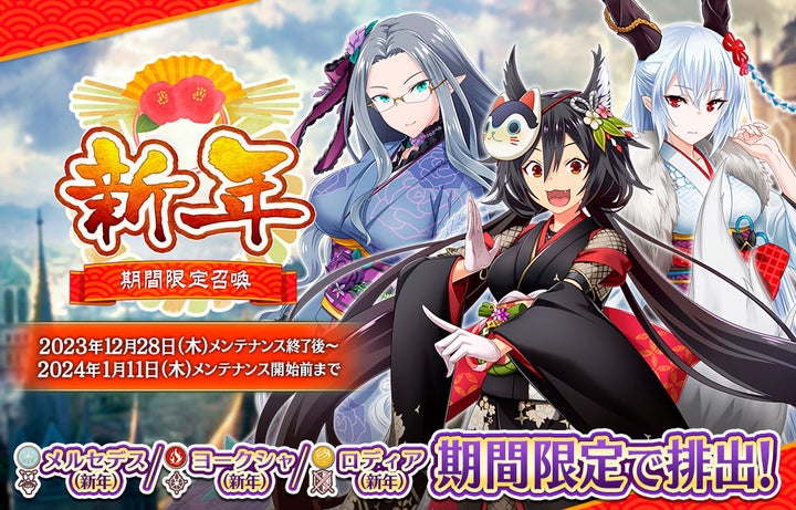 期間限定で、ロディア、ヨークシャ、メルセデスという3人のキャラクターが、新年衣装「キモノ」を身にまとって登場します。