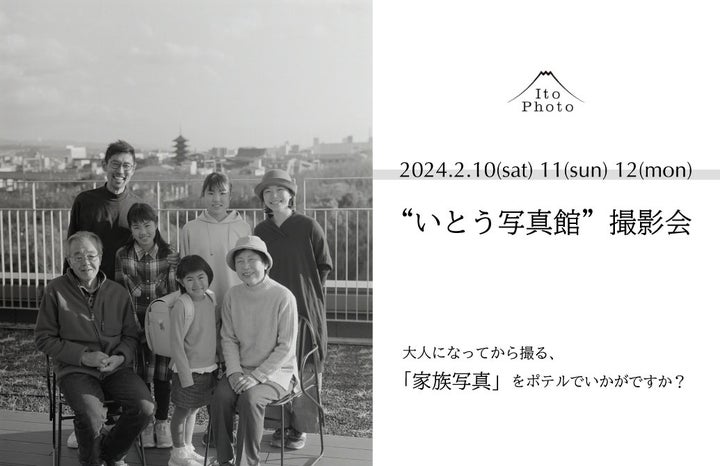 いとう写真館は日本各地で期間限定の撮影会を開催しており、撮影場所は梅小路銭湯ぽて湯、梅小路横丁、あわいの間Drink Space、Roof Top Terraceの4か所から選ぶことができます。