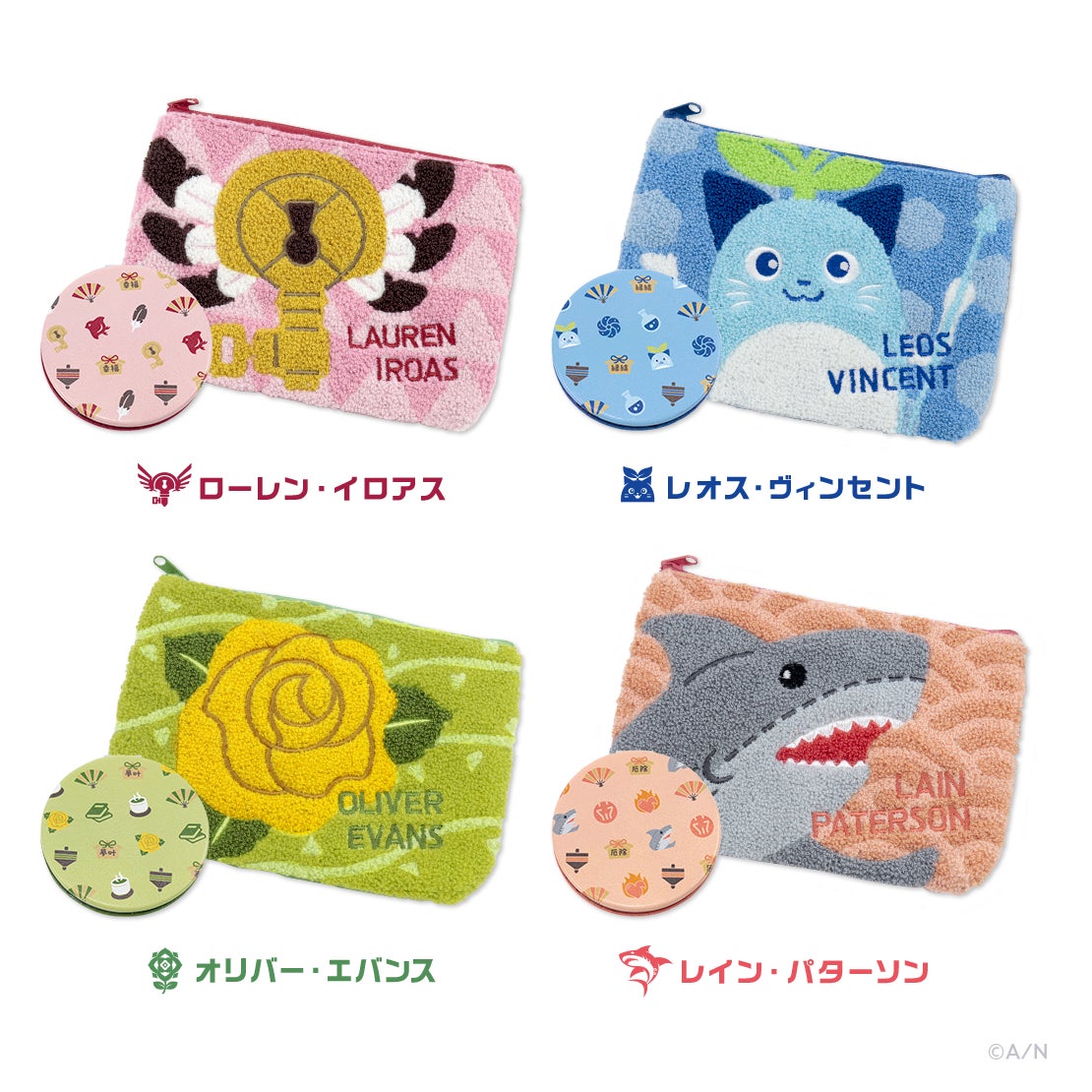 - アクリルスタンド、ランダムチェキ風カード、箔押し缶バッジ、缶入り和紙風ステッカーセット、ポストカードセット、お守りチャーム、サガラポーチ&コンパクトミラーの7種類がラインナップされる