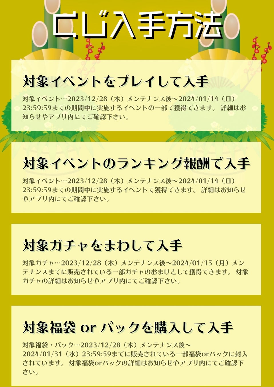 詳細は公式サイトやアプリ内のお知らせをご確認ください。