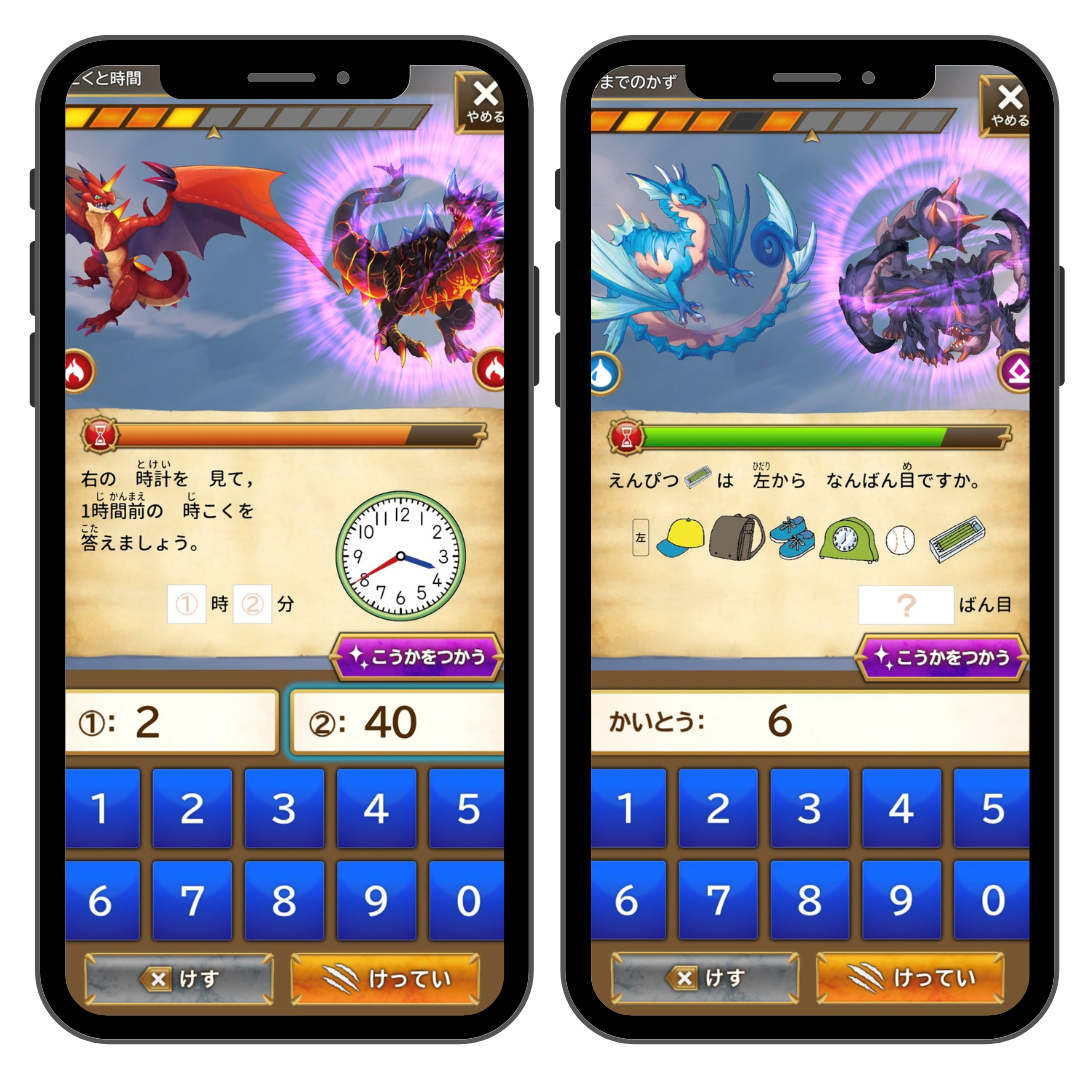 『ドラゴンドリルアプリ』は小1~4年生の算数の単元を網羅する学習アプリ。