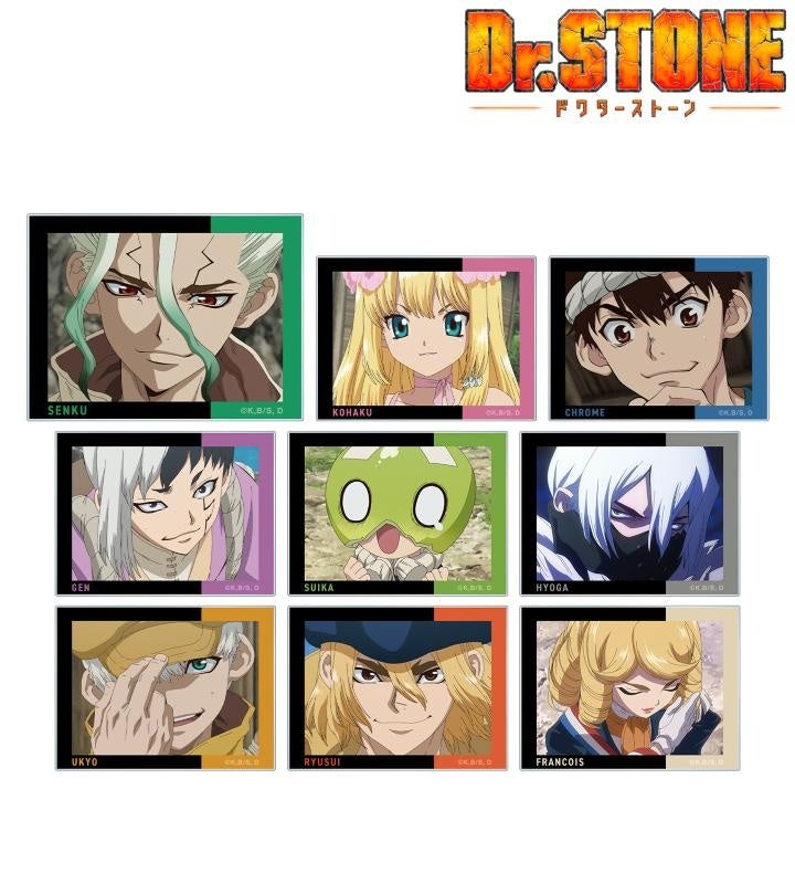- アクリルカードは石神千空、コハク、クロムなどの印象的なシーンを飾ることができる