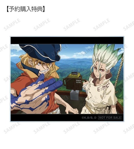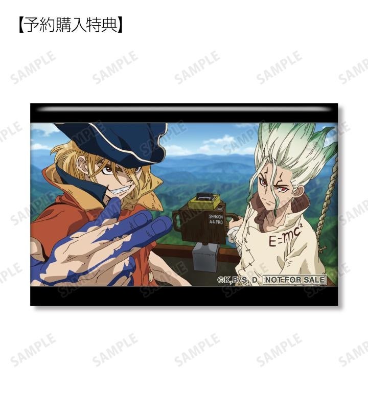 - 予約購入特典として、石神千空&七海龍水のアクリルカードと缶バッジが付属