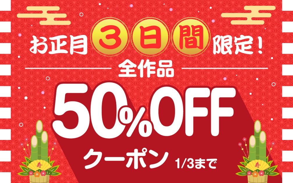 また、BL占いやラッキーBLも更新されていますので、ぜひLa Roseraieでお気に入りのBL作品を見つけてください! La Roseraie(ラ・ロズレ)では、期間限定で1000pt以上の購入で使える50%OFFクーポンをプレゼントしています!2024年1月1日0:00から1月3日23:59までの期間限定ですので、お見逃しなく!クーポンの適用には無料の会員登録が必要ですので、まずは会員登録をお願いします。