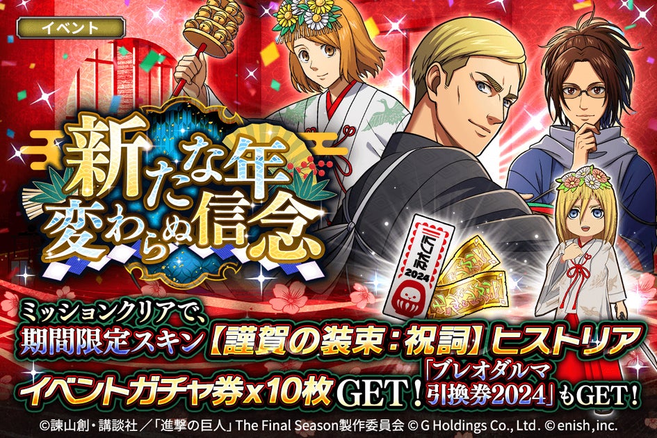 「進撃の巨人Brave Order」新イベント開催!新年を祝うピックアップガチャや爆進ブーストイベントも!