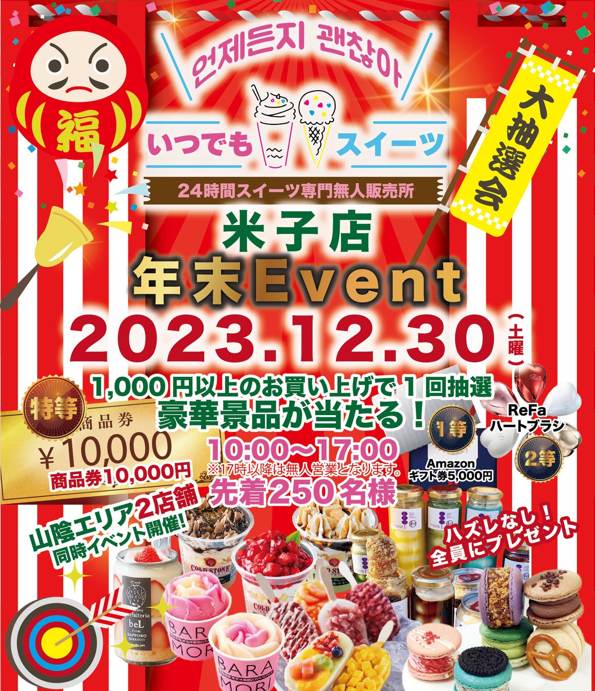 この記念として、山陰エリアの2店舗では12月30日に年末イベントを同時開催します。