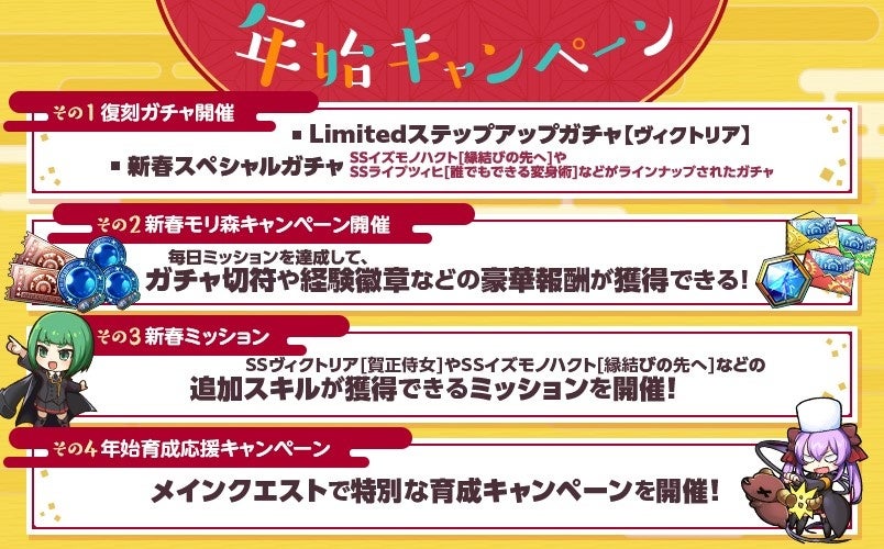 - 新年イベント、正月ガチャ、年始キャンペーン