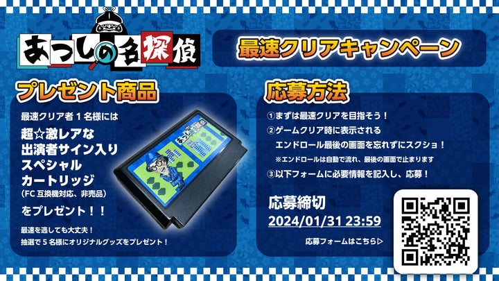 • 最速クリアキャンペーン実施で特典グッズや出演者サイン入りスペシャルカートリッジをプレゼント