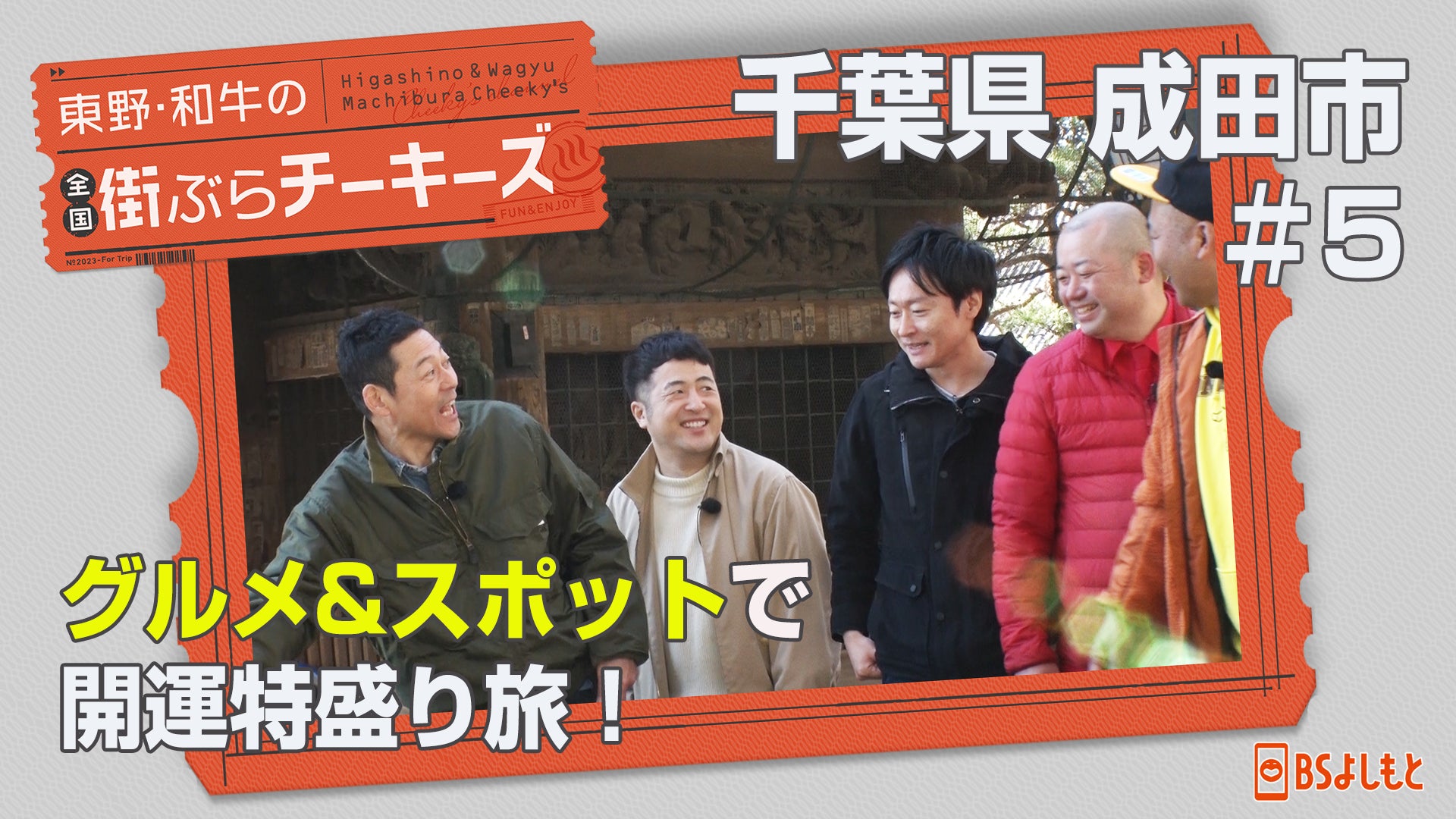 2024年1月3日(水)に放送されるBSよしもとの番組『東野・和牛の全国街ぶらチーキーズ』#5新春90分拡大スペシャルでは、東野幸治と和牛(水田信二、川西賢志郎)が千葉県成田市を訪れます。