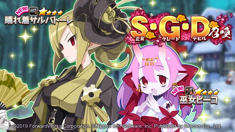- 正月グレートデビル召喚で新キャラクター「巫女ビーコ」と「晴れ着サルバトーレ」が登場