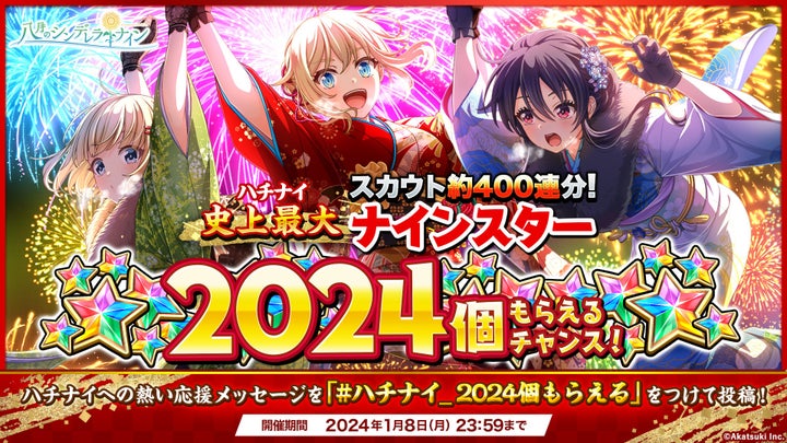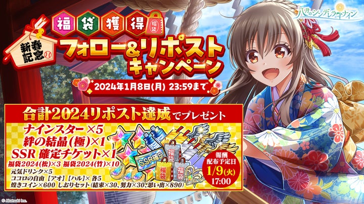 また、「#ハチナイ_謹賀新年2024」のハッシュタグがついた公式ポストのリポスト数が2,024を達成すると、豪華報酬がプレゼントされます。