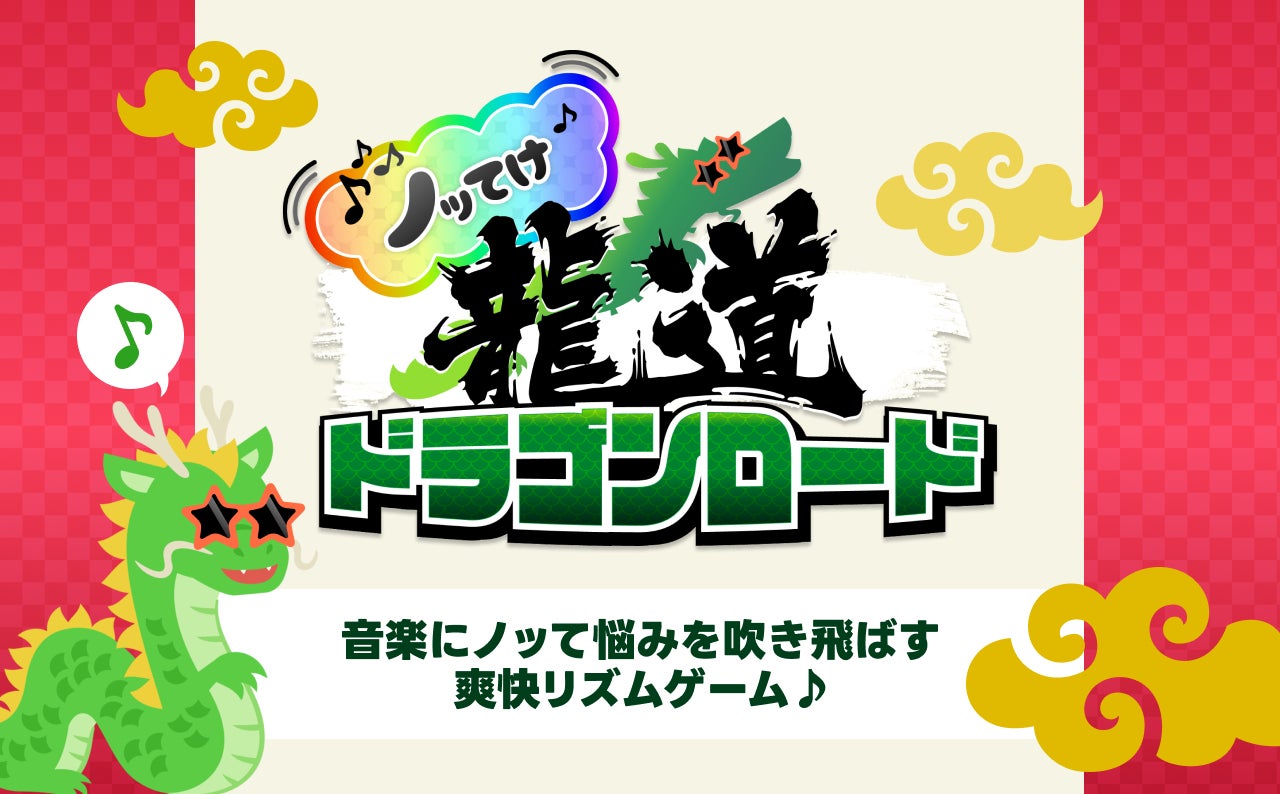 「ノッてけ!ドラゴンロード」は、辰の「タツノリ」が音楽に合わせて街の悩み「ナヤミン」を解消する爽快なリズムゲームです。