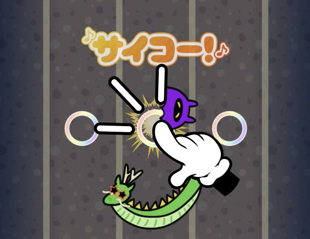 - 「ノッてけ!ドラゴンロード」は、辰の「タツノリ」が音楽にノリながら街の悩み「ナヤミン」を吹き飛ばす爽快リズムゲーム
