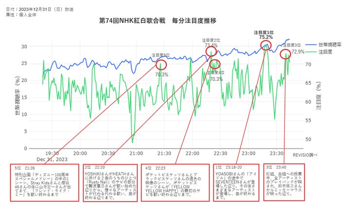 2023年12月31日に放送された第74回NHK紅白歌合戦の注目シーンを分析しました。