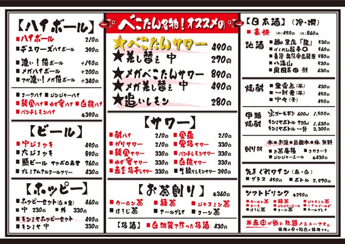 • 毎週火曜日に京急蒲田店北千住店浦安店でドリンク1杯無料