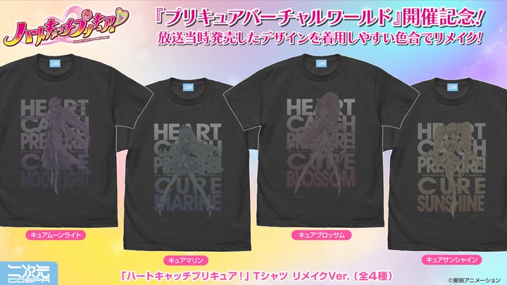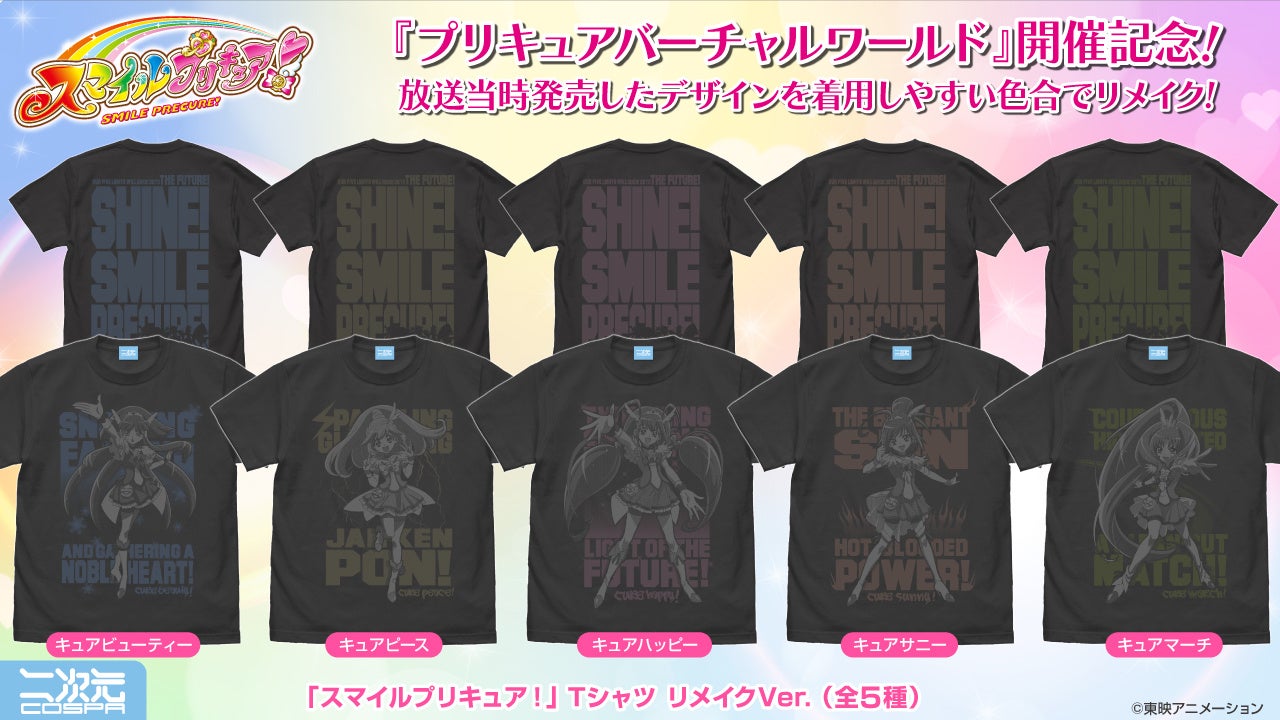 人気作品「Yes!プリキュア5」「ハートキャッチプリキュア!」「スマイルプリキュア!」のTシャツが、より着用しやすい色合いにリメイクされました。
