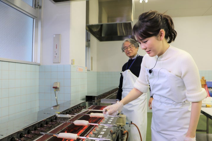 その後、温泉街を散策し、斉藤、小塚、吉川はあんドーナツや天ぷら串を味わいます。