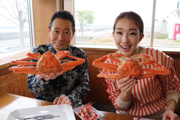 - 斉藤雪乃小塚舞子吉川亜樹と一緒に城崎温泉を散策し、おけしょう鮮魚店で迫力のあるカニを見ます。