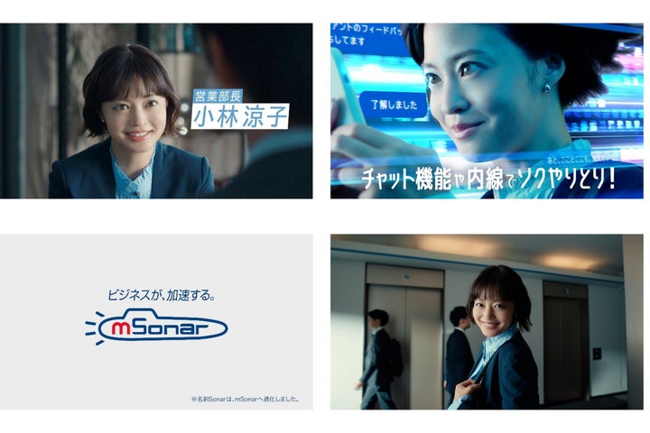 - CMでは小林涼子さんが営業部長役として出演し、機能や使い方を紹介