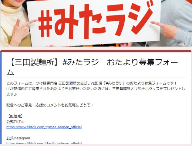 - 三田製麺所は『#みたラジ』という公式LIVE配信を行っている
