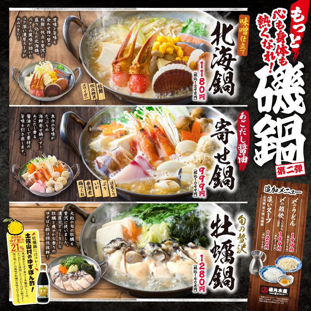 磯丸水産では、2024年1月8日(月)から北海鍋や海鮮寄せ鍋、牡蠣鍋などの贅沢な鍋メニューを提供いたします。