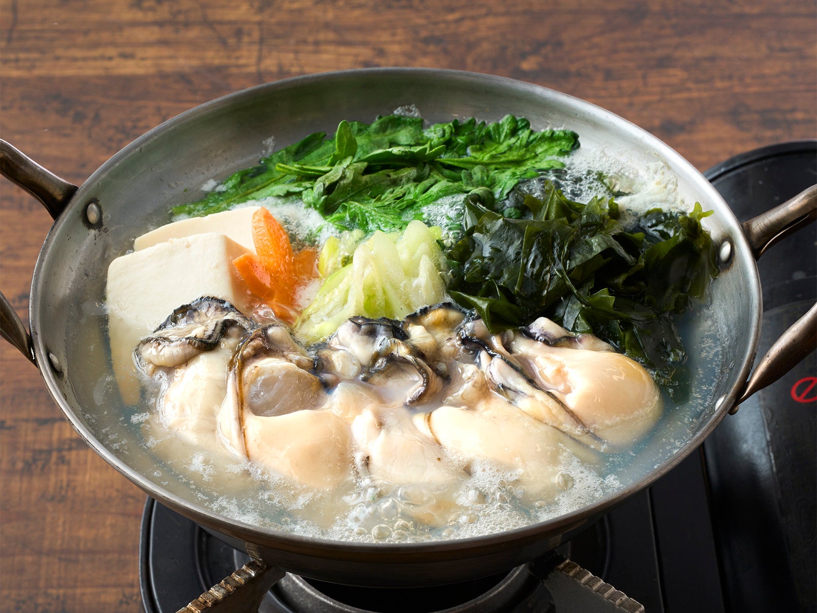 - 牡蠣鍋には大粒の旬の牡蠣を使用し、濃厚でクリーミーな牡蠣とさわやかな香りのゆずぽん酢
