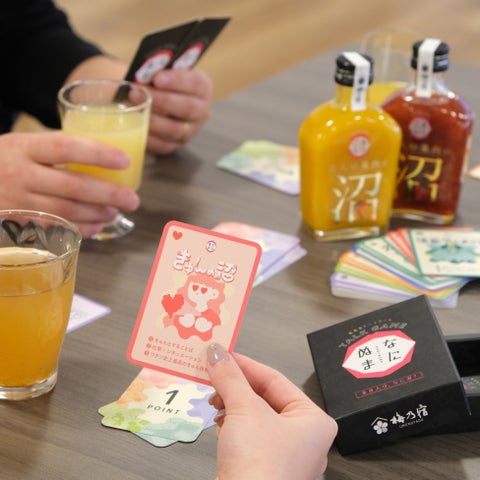 そこで、梅乃宿は「新しい酒文化を創造する」という目標を掲げ、お酒の場での対話の価値を広げるために、梅乃宿オリジナルトークゲーム「なに沼?」を開発しました。