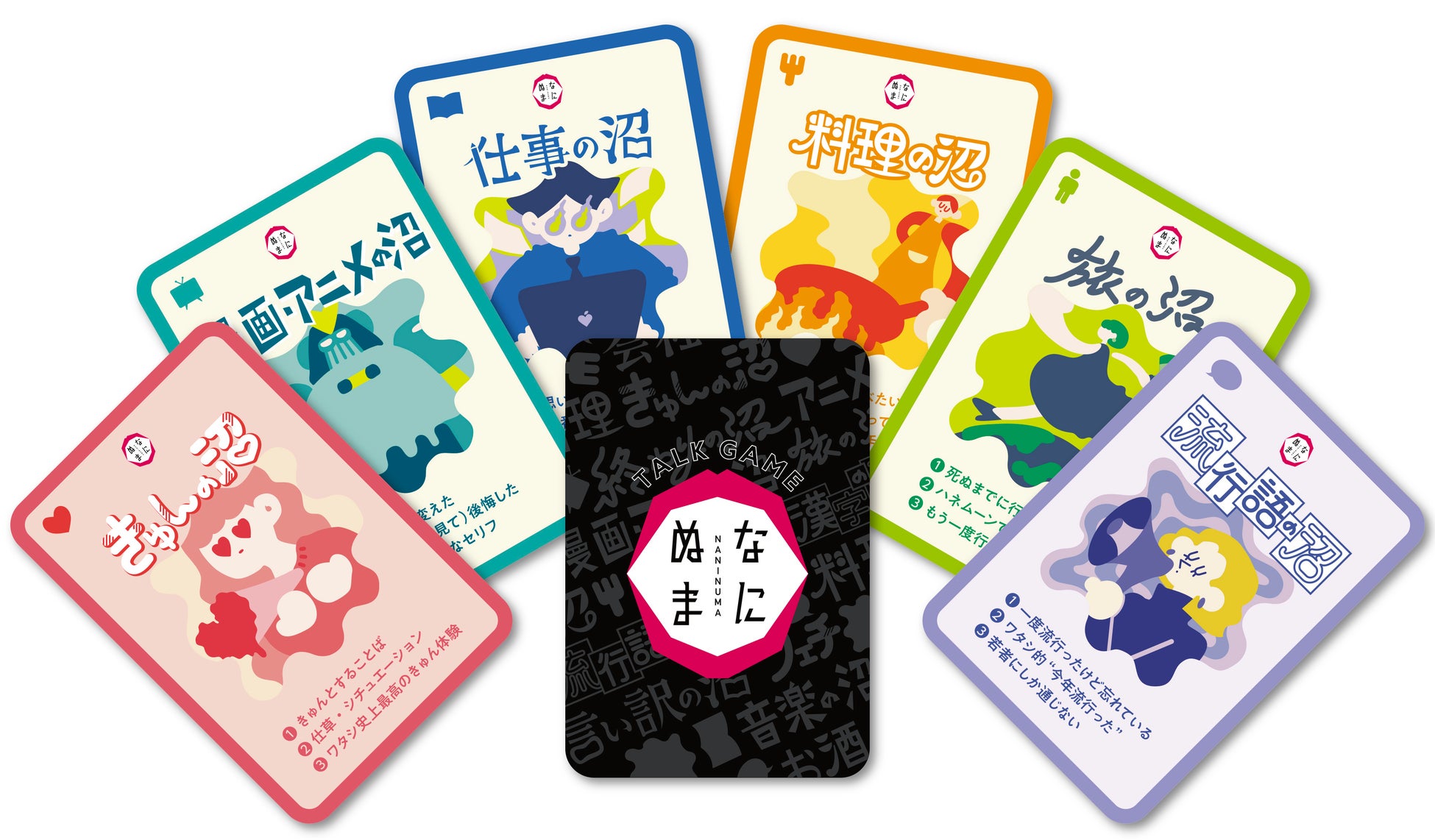 このゲームは、家族や友人同士が集まるお酒の席で楽しめるもので、プレイヤーたちはカードに描かれた「沼」のテーマを通じて、他のプレイヤーのハマっている「沼」を推理していきます。
