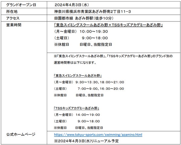 - 東急スイミングスクールあざみ野×TSSキッズアカデミーあざみ野