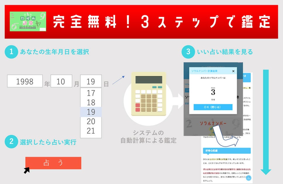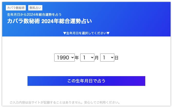 この占いでは、生年月日を入力するだけで無料で占うことができます。