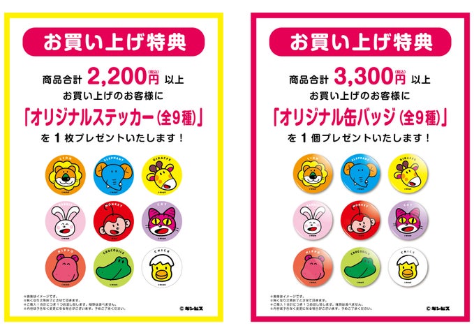 会場ではたべっ子どうぶつの魅力的なアイテムが販売され、お買い上げ特典としてオリジナルステッカーや缶バッジがプレゼントされます。