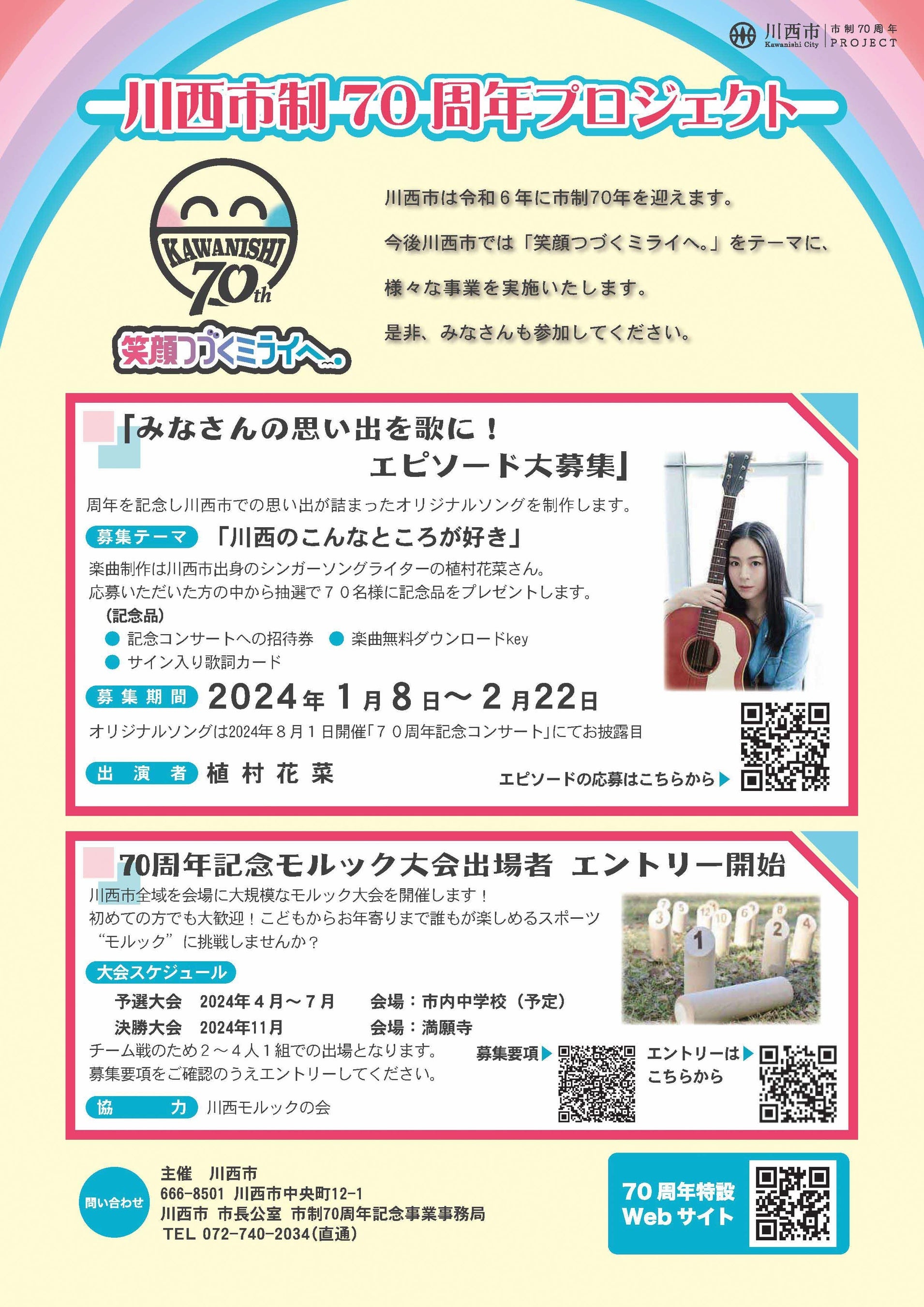 一緒に川西市制70周年を盛り上げましょう!」とコメントしています。