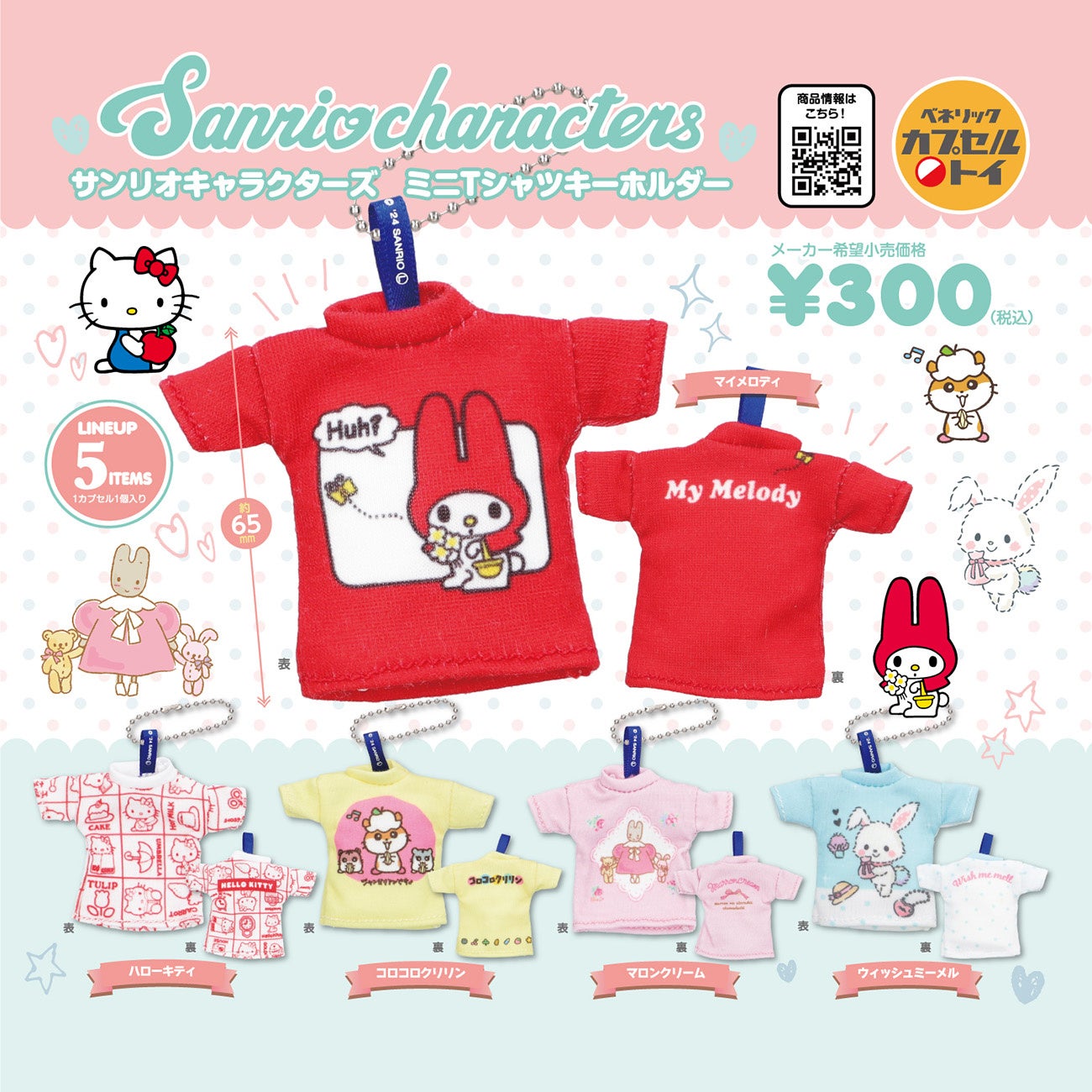 • 「サンリオキャラクターズ ミニTシャツキーホルダー」は、ミニチュアサイズのTシャツをキーホルダーとして楽しめる