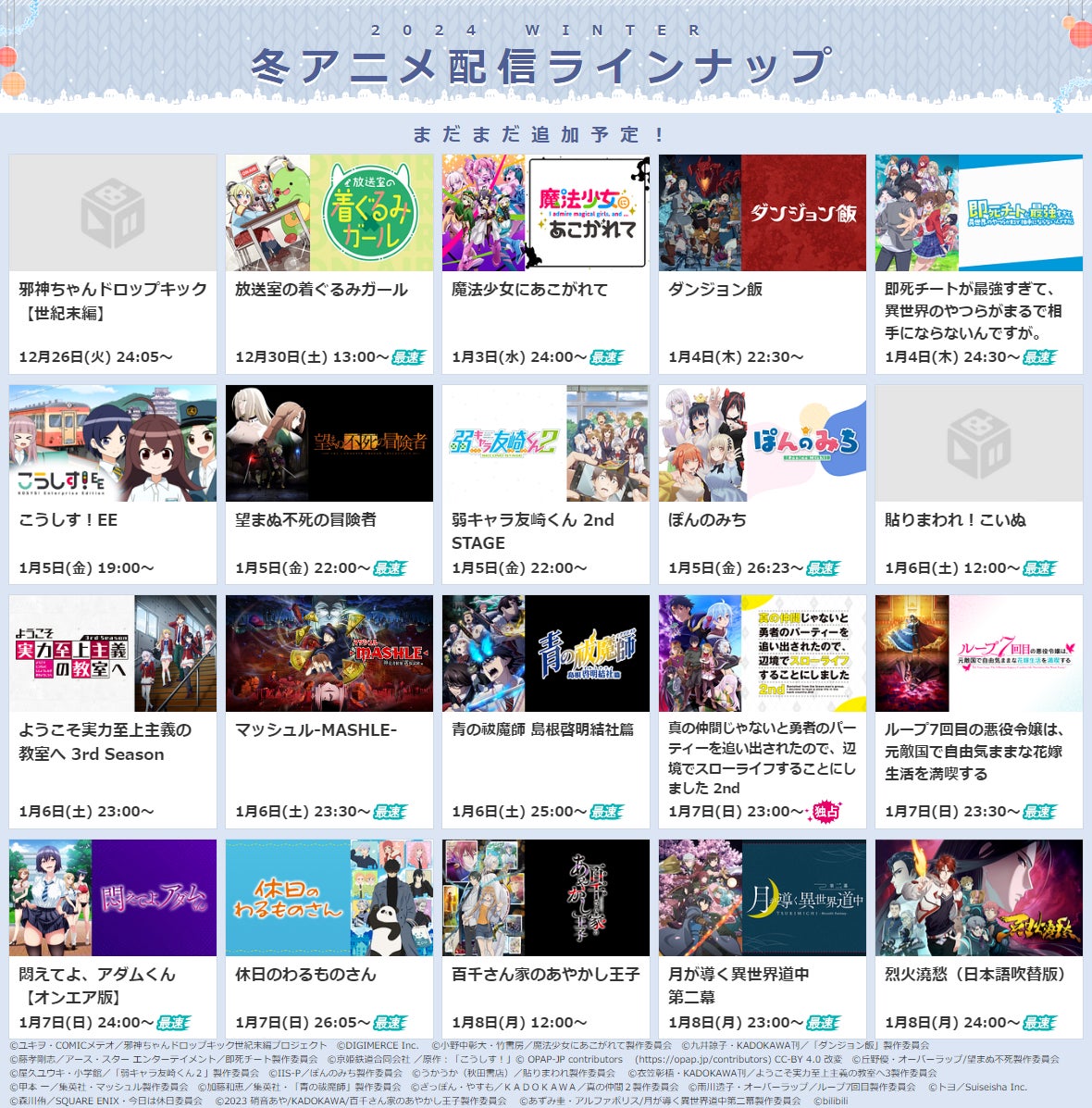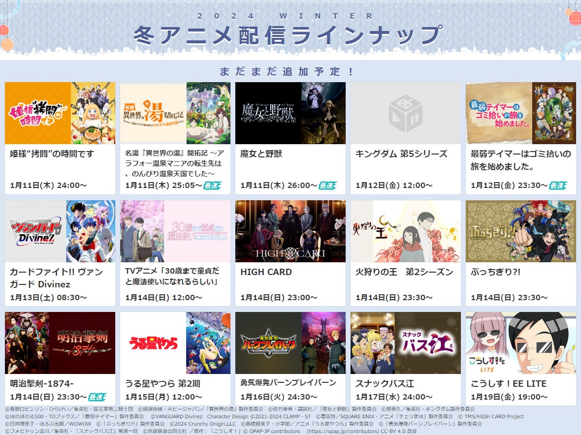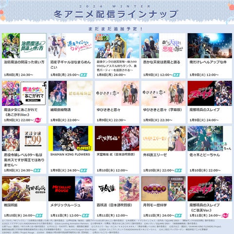 - 2024冬アニメの配信がdアニメストアで決定