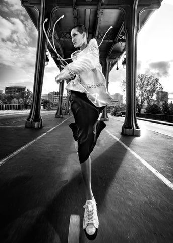 Y’sの2024春夏コレクションのフォトワークは、マックス・ヴァドゥクルによってパリのビル・アケム橋で撮影されました。
