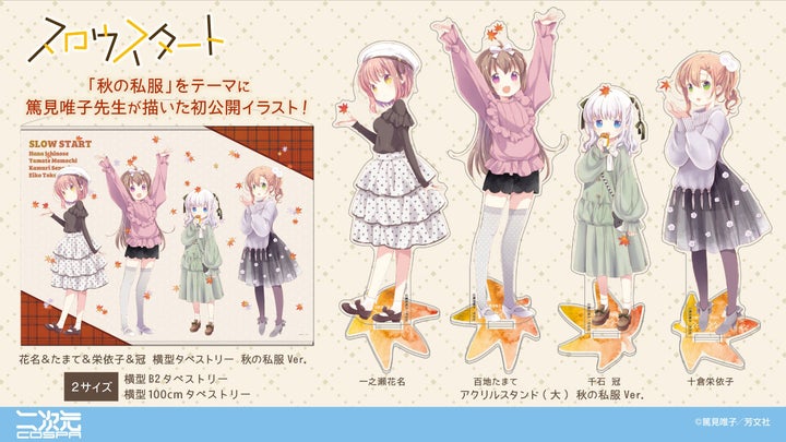 - 篤見唯子先生のイラストを使用した『スロウスタート』のアクリルスタンドやタペストリーが初公開