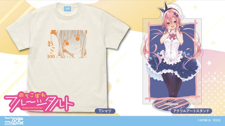 また、『おちこぼれフルーツタルト』では「おこ×100」Tシャツや桜衣乃のアクリルスタンドが販売されます。