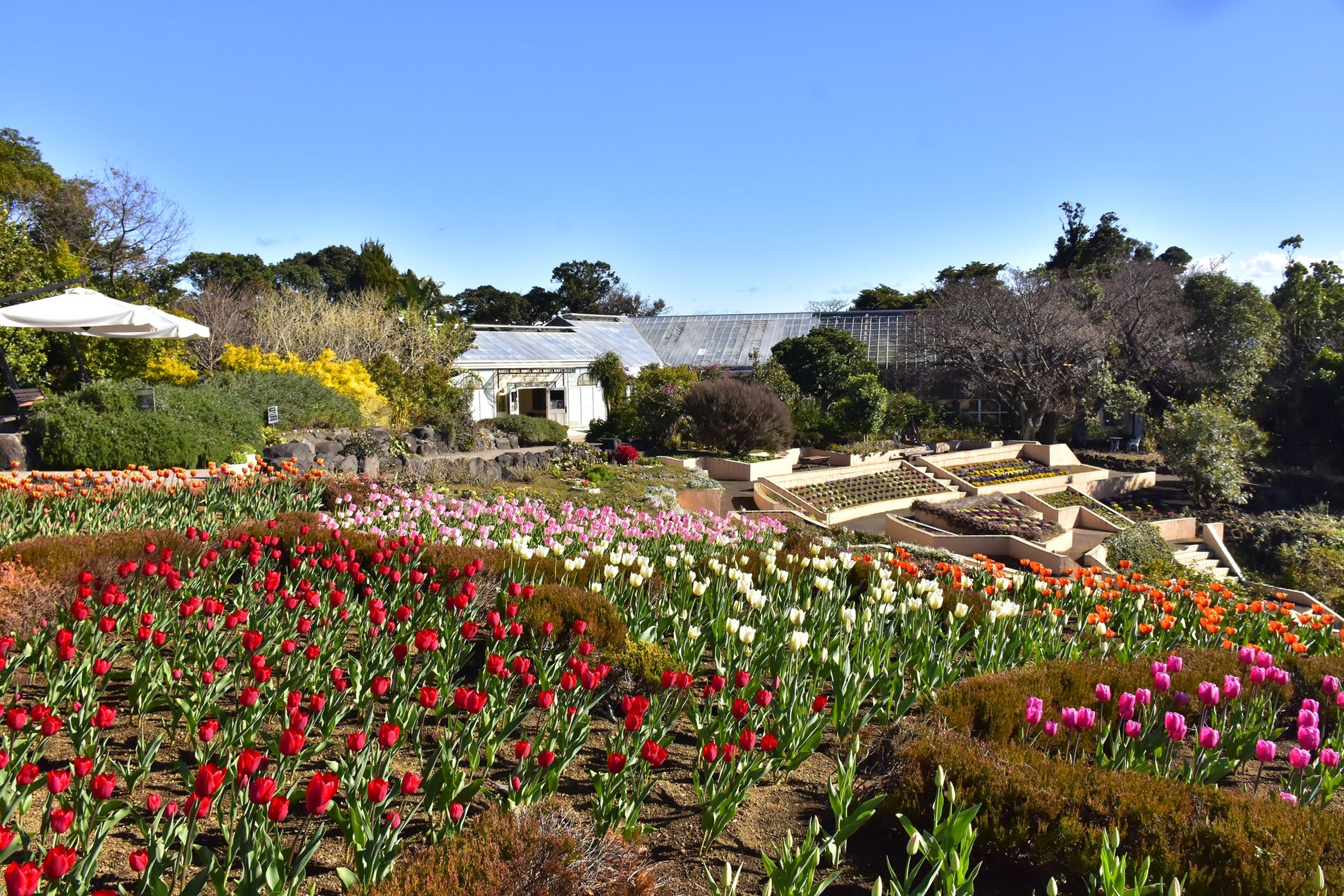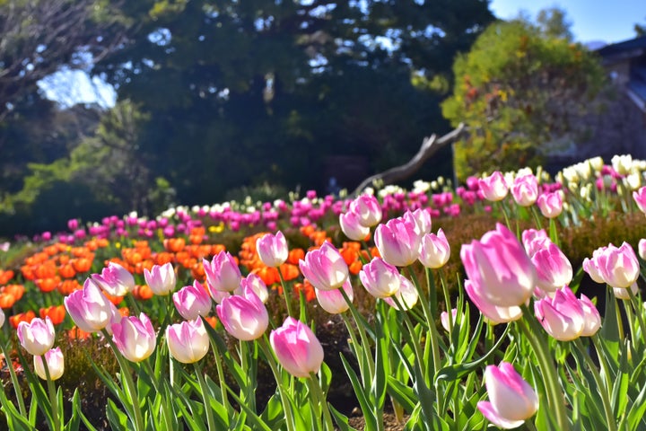 - エントランス付近の花壇には約3,500球の色とりどりな品種が植栽