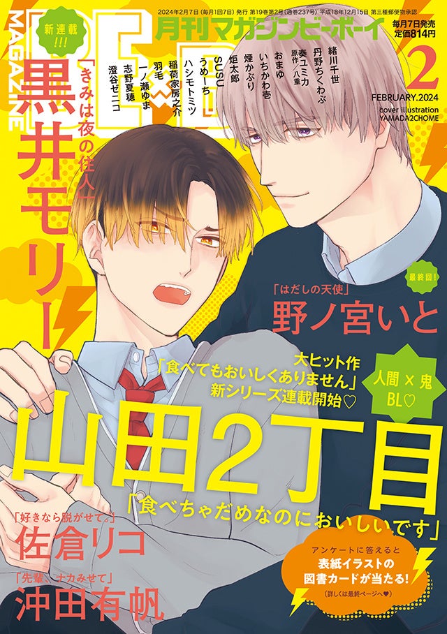 株式会社リブレは、1月6日に発売される雑誌「マガジンビーボーイ2024年2月号」で、山田2丁目先生が表紙を飾ります。
