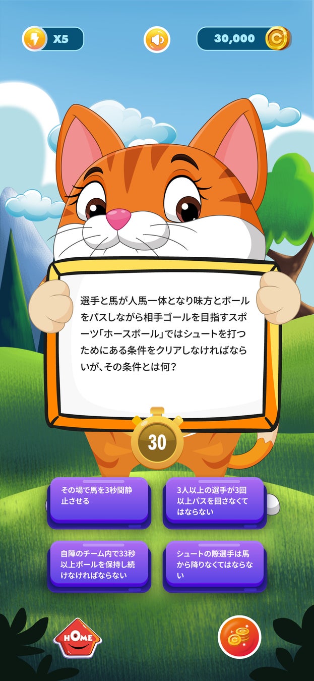 - 195種類の猫を集めることが目的で、20,000問以上のクイズに挑戦