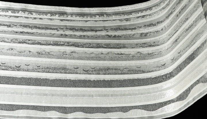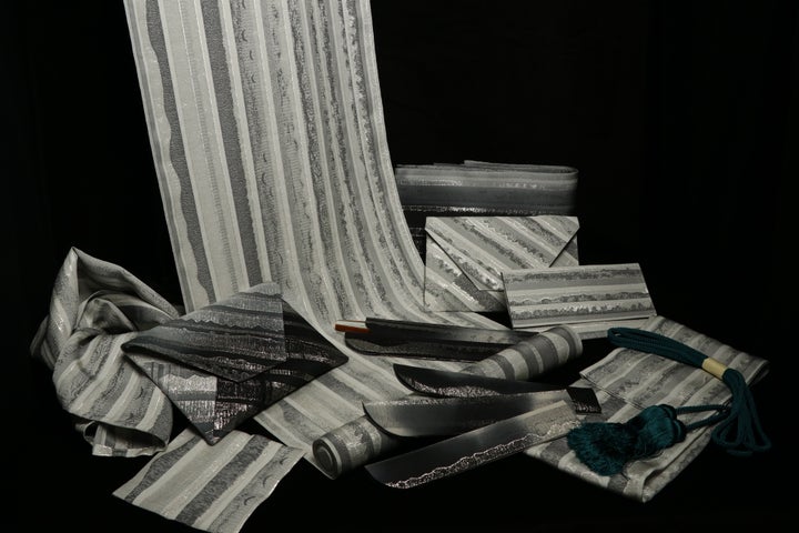 この特別企画は、刀剣と着物の文化を融合させた新しいアイデアで、京都の染めと織の職人が日本刀の美しい刃文や地鉄を表現しました。