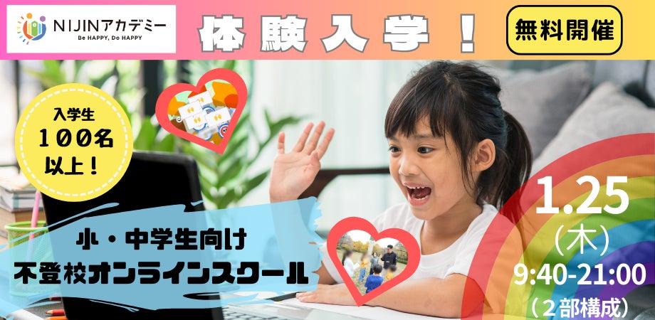 株式会社NIJINが運営する小中学生向けオンラインスクール「NIJINアカデミー」では、1月25日にバーチャル校舎での1日体験入学を開催します。