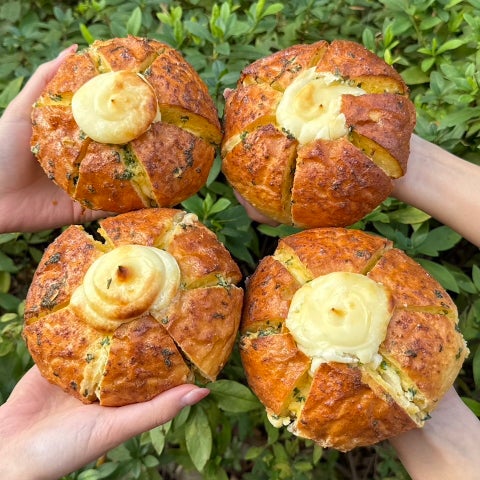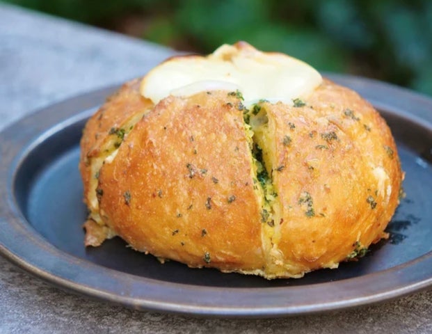 このパンはガーリックバターにくぐらせ、クリームチーズを挟んで焼き上げられ、背徳感と甘さの組み合わせが中毒性があります。