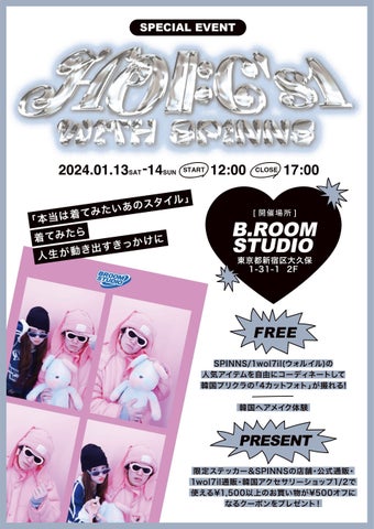 イベントでは、SPINNSのインブランドである1wol7ilの人気アイテムを自由にコーディネートして、韓国プリクラの「4カットフォト」が撮影できます。